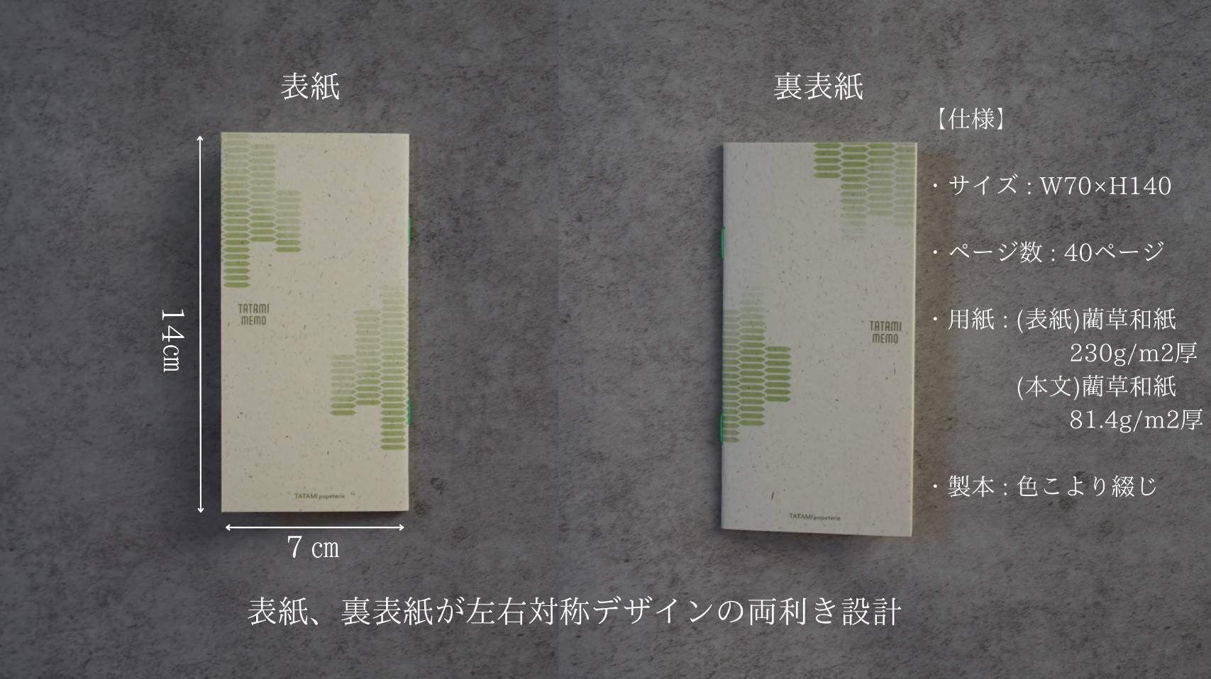 それに合わせて作ったところ、絶妙に使いやすいメモができました!!デザインも畳を彷彿としてもらいたい想いから、畳の素朴で落ち着く色合いと、畳の目をイメージしたデザインで人の目を引き付ける素敵なメモに仕上がりました。